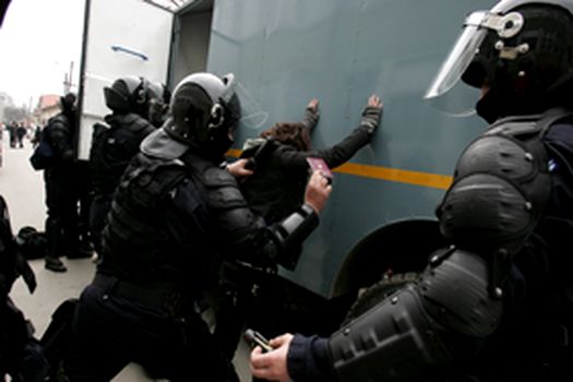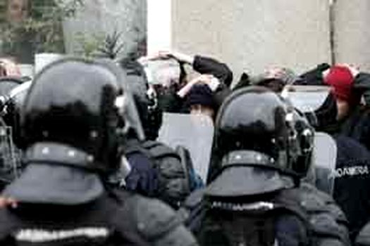 "La vederea poliţiştilor şi jandarmilor, grupul de persoane a manifestat un comportament extrem de violent, folosind chiar spray-uri iritant lacrimogene pentru intimidarea acestora. La solicitarea jandarmilor de a se legitima, aceştia au refuzat, continuând să se manifeste violent. S-a trecut la imobilizarea celor care produceau acte de violenţă, moment în care unul dintre luptătorii jandarmi a fost rănit, fiind condus la Institutul de Medicină Legală pentru investigaţii amănunţite", a declarat sublocotenentul Marius Militaru.