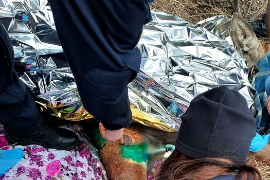 „Dupa 5 zile de îngrijiri medicale acordate cu pasiune de colegele noastre Beatrice şi Ana, sub coordonarea medicului veterinar Valentin Doană, starea de sănătate a cerbului înregistrează o evoluţie bună, astăzi reuşind să pună pentru prima dată pe pământ piciorul rănit! Plăgile infectate au fost drenate, i-au fost administrate antibiotice şi antiinflamatoare şi, pentru a ajuta organismul să se recupereze, a fost deparazitat şi vitaminizat, toate costurile medicamentelor folosite fiind suportate prin sumele de bani donate de jandarmii buzoieni.A fost vizitat permanent de reprezentanţii Gărzii forestiere şi ai Ocolului Silvic Siriu, cărora le mulţumim pentru hrana pusă la dispoziţie”, au povestit jandarmii, pe Facebook.