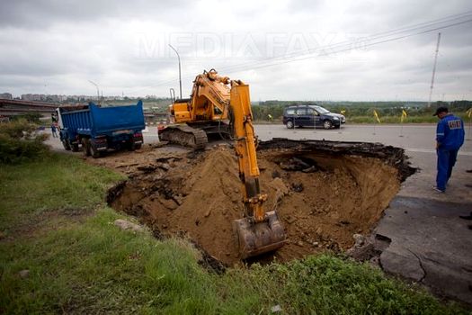 Tot din cauza ploilor abundente din noaptea de miercuri spre joi, DN 25 care face legătura între Galaţi şi Tecuci s-a surpat pe un sens de mers, la ora actuală circulaţia desfăşurându-se pe o singură bandă.