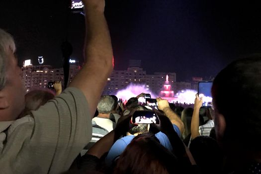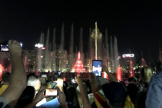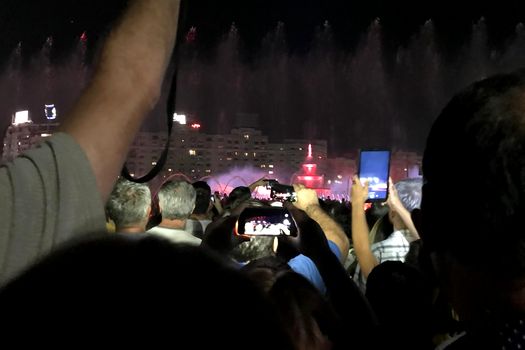 Sâmbătă seara, ora 20.00. Mii de oameni s-au strâns în Piaţa Unirii pentru a vedea „Simfonia Apei”. Din 10 oameni, cel puţin şapte au telefonul mobil în mână, încercând să facă cel mai bun video sau cea mai bună poză. Spectacolul apei, care se ridică la câţiva metri de la pământ, e urmărit doar prin ecran.
