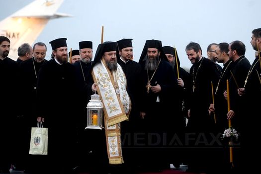 Delegaţia Patriarhiei Române a ajuns pe Aeroportul „Henri Coandă” Otopeni, în jurul orei 20.00, cu o întârziere de aproximativ o oră, din cauză că a decolat târziu de la Ierusalim, dat fiind numărul mare de delegaţii care au mers sâmbătă să ia lumină de la Mormântul Sfânt. La Salonul Oficial al Aeroportului Otopeni au aşteptat reprezentanţi ai eparhiilor să ia Lumina Sfânta pentru a o împărţi credincioşilor la slujba de Înviere.