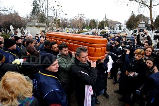 Sicriul a fost purtat pe umeri de apropiaţii artistei, printre care Călin Geambaşu şi Sebastian, iubitul cântăreţei.