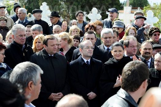 Premierul Emil Boc şi ceilalţi oficiali veniţi de la Bucureşti nu au putut ajunge la mormânt din cauza oamenilor adunaţi pe alei, în jurul acestuia, astfel că au rămas în mulţime.