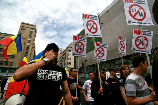 Câteva zeci de persoane au participat, sâmbătă, la marşul "pentru normalitate", organizat de Asociaţia "Noua Dreaptă" cu câteva ore înaintea paradei gay, manifestanţii spunând că este un marş împotriva avorturilor şi homosexualităţii.