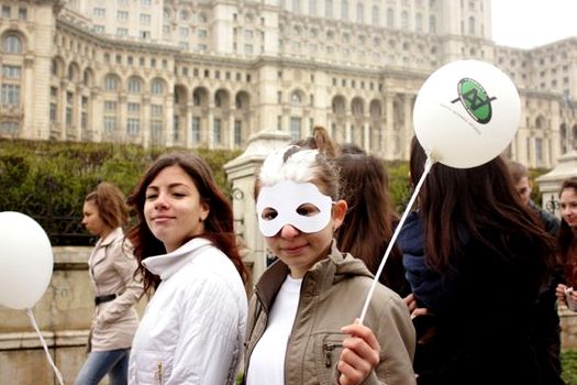 Elevii au purtat şepci şi tricouri albe, ducând cu ei baloane de aceeaşi culoare, dar şi pancarte cu numele liceului sau al şcolii unde învaţă ori inscripţionate cu mesaje împotriva consumului de droguri.