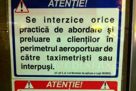 „Se interzice orice practică de abordare şi preluare a clienţilor în perimetrul aeroportuar de către taximetrişti sau interpuşi”.