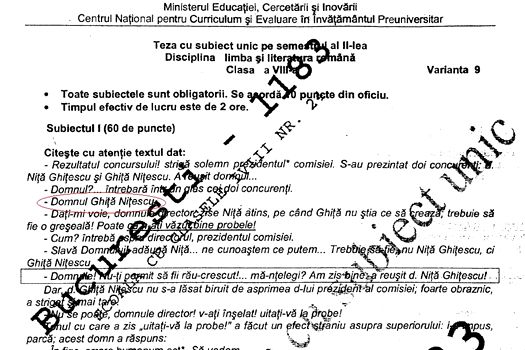 Astfel, în varianta cu numărul 9 de la proba la Limba şi literatura română a apărut o inversare de nume, în două locuri, numele Niţă Ghiţescu fiind încurcat cu Ghiţă Niţescu, cei doi candidaţi din schiţă.