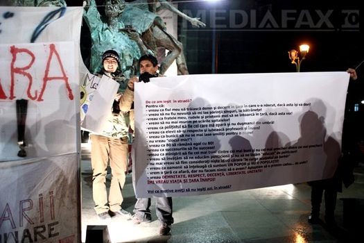 În cea de-a şasea zi de proteste au început să apară şi nemulţumirile clare, punctuale: „Asta nu e justiţie!” sau „Unde sunt banii noştri?”. Ironiile de genul „Jandarmeria, apără-i chelia!” sau „Am adus vaporul, pleci?” scris pe o bucată de polistiren decupată în formă de vapor au luat locul scandărilor triviale din serile trecute.