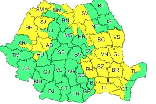 Avertizarea va intra în vigoare duminică, la ora 12.00, şi va fi valabilă până la ora 23.00.