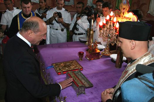 Preşedintele Traian Băsescu şi soţia sa, Maria, au mers, duminică, la Mangalia, la racla cu Brâul Maicii Domnului. Şeful statului şi soţia sa au aprins lumânări la biserica militară de garnizoană "Sfânta Maria", care a fost sfinţită de arhiepiscopul Tomisului Teodosie, duminică.