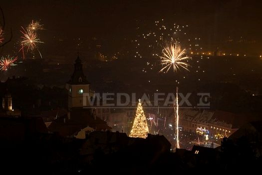 La miezul nopţii, a avut loc un spectacol de artificii care a durat 15 minute, iar în Piaţa Sfatului oamenii au făcut cercuri în jurul celor care lansau petarde şi pocnitori la sol.