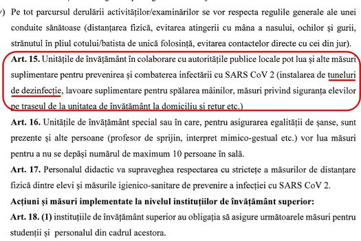 La Art. 15 din Ordin, se precizează că „unităţie de învăţământ în colaborare cu autorităţile publice locale pot lua şi alte măsuri