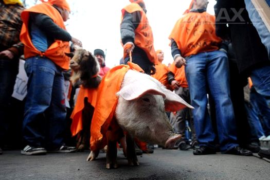 Manifestanţii aveau steaguri tricolore şi pancarte, pe care scra „Un pitic şi cu un chior şi-au bătut joc de popor”, „Băsescu, nu uita, România nu te vrea”, „Voinţa poporului, demisia dictatorului”, „Băsescu – PDL, datorii, hoţie, şomeri, sărăcie”, „Suntem cetăţeni, nu viermi”, „Alegeri anticipate”.