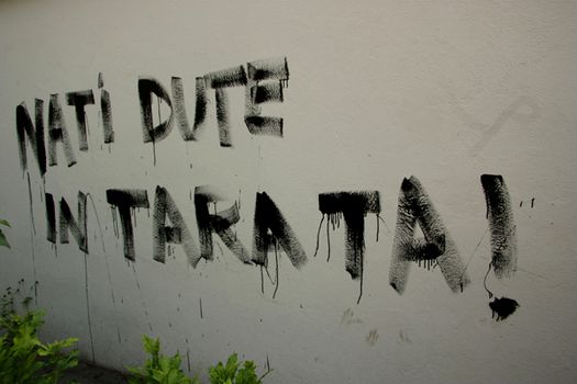 Pe unul din zidurile care îngrădesc locuinţa a fost scris "Nati, du-te în ţara ta", iar altul a fost măzgălit.