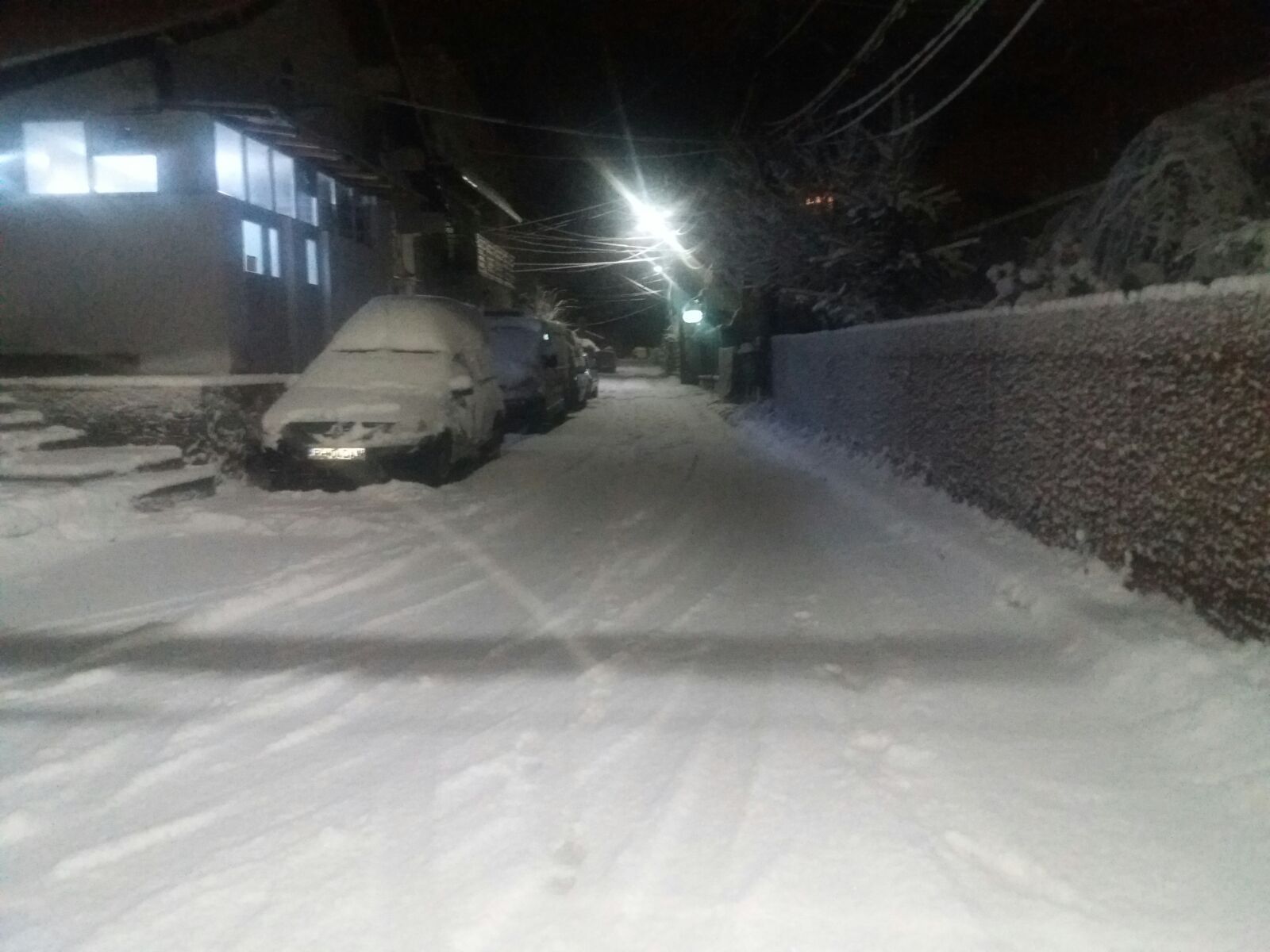 Zăpada depusă pe drum are aproximativ trei centimetri, pe DN 1A, şi este frământată. Mai multe maşini de mare tonaj au rămas blocate, atât pe DN 1, în zona Posada, cât şi pe DN 1A, la Măneciu.