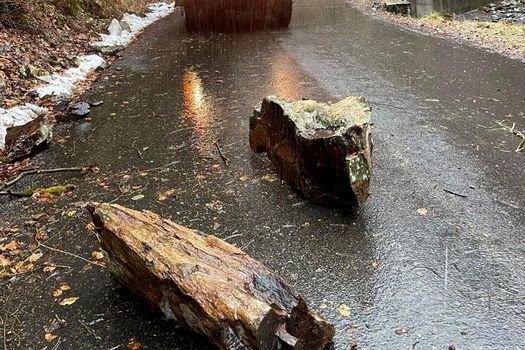 Şi drumul spre Transalpina este blocat pe o bandă de o bucată de stâncă desprinsă şi ajunsă pe partea carosabilă, între bornele 96-98.