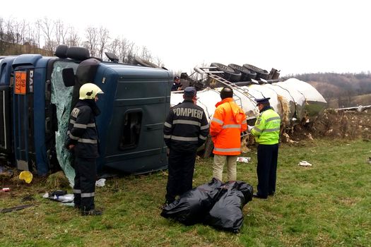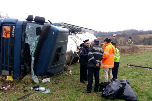Potrivit unui comunicat transmis de Inspectoratul pentru Situaţii de Urgenţă al judeţului Caraş-Severin, cisterna care s-a răsturnat în afara carosabilului transporta bitum lichid.