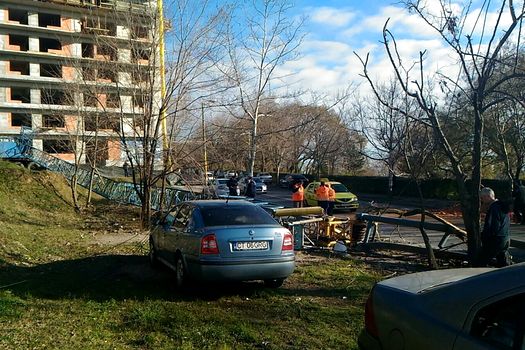 Din primele informaţii reiese că braţul macaralei s-a rupt în timp ce încerca să ridice un palet din beton şi a căzut pe asfalt, avariind mai multe autoturisme parcate în zonă.