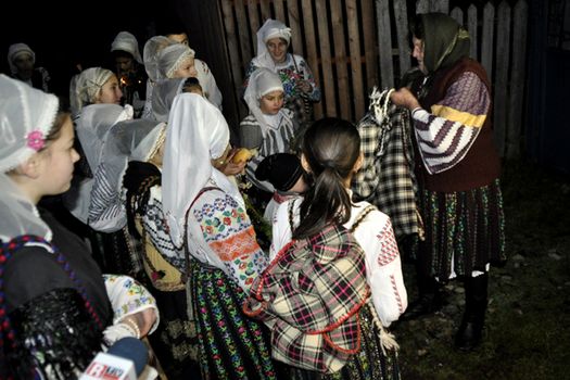 În grupul ”Moştenitorii”, băiatul care duce torţa şi o elevă de clasa a VIII-a şi-au învăţat replicile, astfel că de îndată ce pornesc pe uliţele satului, odată cu lăsarea întunericului, se vor auzi şi strigăturile lor: ”Dă-mi colacul şi cârnatul/ Că de nu, mă duc la altul!; Mie dă-mi prescurea mare, de vrei să-ţi fac o urare!”.