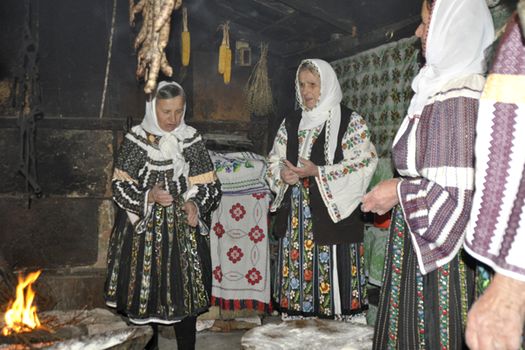 Până ce s-au copt piţărăii s-a făcut seară, iar femeile, gătite de sărbătoare, ies în pragul casei şi aşteaptă colindătorii.