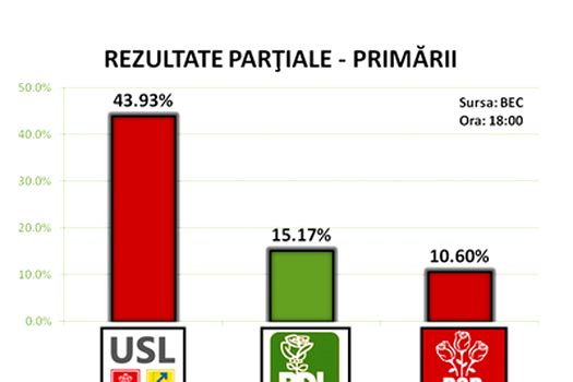 Citeşte şi: REZULTATE PARŢIALE ALEGERI LOCALE: USL – 41,49% din mandatele de primari, PDL – 16,20%, iar PSD – 12,33%