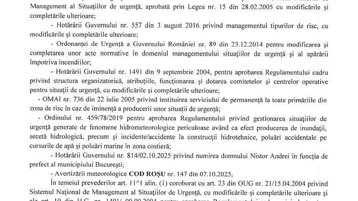 Prefectul Capitalei, Andrei Nistor, a convocat ședința CMBSU miercuri, de la ora 14.30, pentru a decide măsurile în contextul ploilor abundente prognozate. Pe ordinea de zi se află și eventuala suspendare a cursurile elevilor în timpul avertizării Cod roșu.