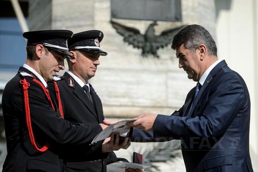 Vicepremierul a acordat titlul de Pompierul de Onoare al anului plutonierului major Filip-Mihai Midrigan, de la Inspectoratul pentru Situaţii de Urgenţă Sibiu, pentru prezenţa de spirit dovedită în îndeplinirea unei misiuni de stingere a incendiului, în urma căreia au fost salvaţi 25 de adulţi şi patru copii.