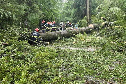 În Sinaia, județul Prahova, 14 persoane au fost surprinse de copaci/crengi în cădere, iar în urma evaluării medicale de la fața locului au fost transportate la spital, conștiente.