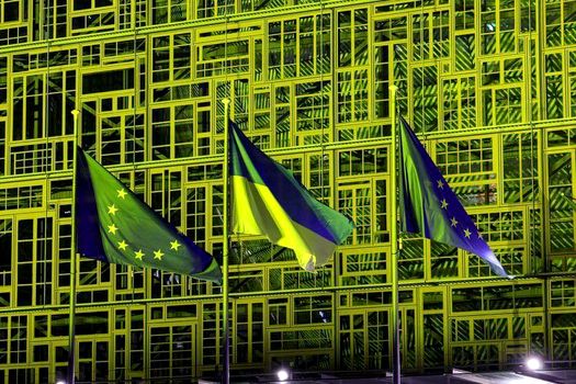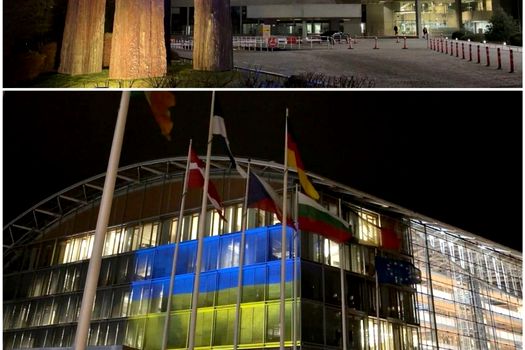 Reprezentanții Consiliul Uniunii Europene au transmis că sediul în care au loc reuniunile miniștrilor europeni și ale liderilor statelor membre a fost luminat în aceleași culori, pentru a arăta sprijinul politic și moral acordat Ucrainei.