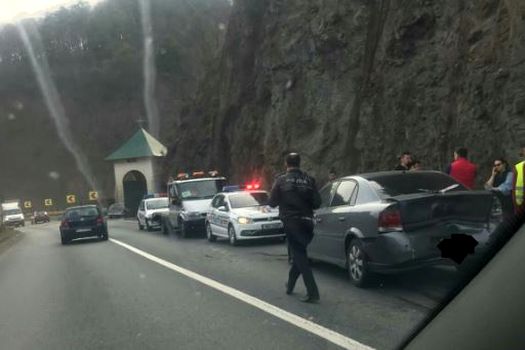 „Accidentul s-a produs pe DN7. Sensul Sibiu – Vâlcea este blocat în zona Călimăneşti. Cauza probabilă a producerii evenimentului rutier este nepăstrarea distanţei regulamentare. În unul din autoturisme se aflau o mamă cu patru copii, fără traumatisme evidente, solicită transportul la spital”, arată Poliţia Vâlcea.