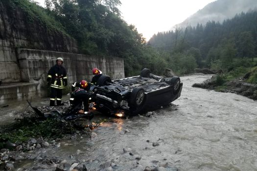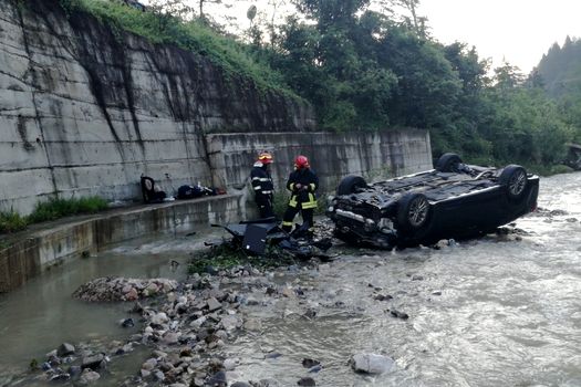 Prima pagină » Social » Patru persoane au fost rănite după ce o maşină a căzut de pe DN 1, într-un râu, în Timişu de Sus. FOTO