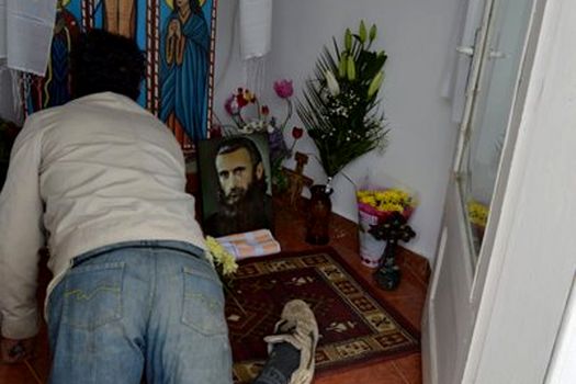 Un localnic care asista de pe margine la mulţimea de oameni veniţi să se roage la portret crede însă că este „ceva suspect”.
