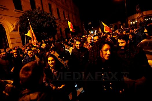 Circa trei sute de persoane s-au aflat, şi după miezul nopţii, în Piaţa Mare din Sibiu şi au scandat lozinci împotriva Guvernului şi a lui Victor Ponta.