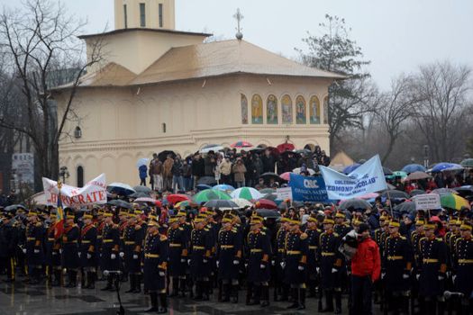 Pentru participanţii la manifestări, autorităţile locale au pregătit câteva mii de porţii de fasole cu cârnaţi şi vin fiert. De asemenea, oamenii au primit fulare tricolore.