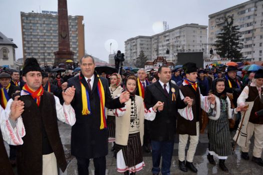 Manifestările au început cu un moment artistic susţinut pe scena amplasată în Piaţa Unirii din Focşani de corul de copii ”Pastorala”, interpreta de muzică populară Veta Biriş şi trupa Protta.