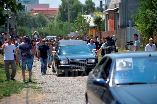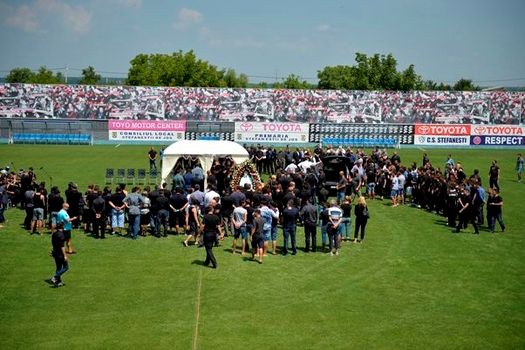 De la stadion, cortegiul funerar a ajuns la biserica din Ştefăneşti, unde slujba de înmormântare a fost oficiată de şapte preoţi.