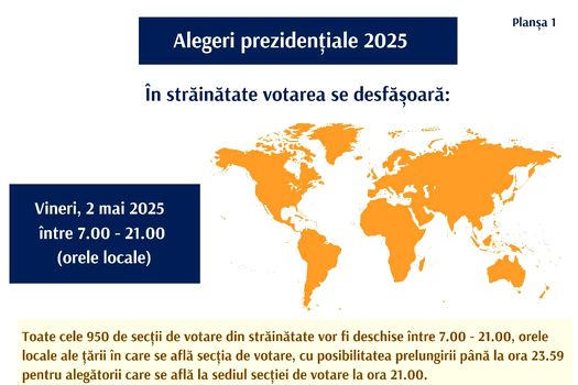 Începând de luni, 20 ianuarie 2025, alegătorii români cu domiciliul sau reşedinţa în străinătate, care doresc să voteze la alegerile prezidenţiale din acest an prin corespondenţă sau la o secţie de votare din afara ţării, se pot înregistra online.