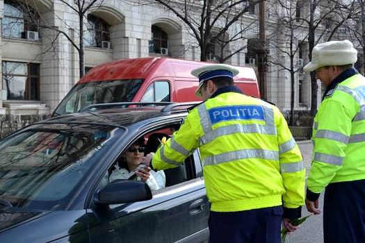 Poliţiştii rutieri au oprit şoferiţele pentru a le da „amenzi florale”, aceleaşi „sancţiuni” fiind date şi doamnelor şi domnişoarelor pasager.