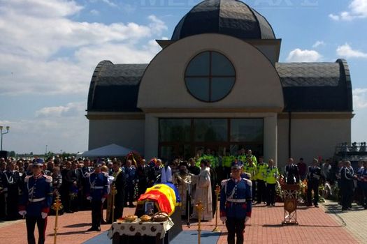 Slujba religioasă a început la ora 13.00, după ce sicriul cu trupul neînsufleţit al subinspectorului de poliţie Gheorghe Ionescu, de la Brigada Rutieră a Capitalei, a fost scos din capelă, acoperit cu un steag tricolor, şi aşezat pe catafalc.