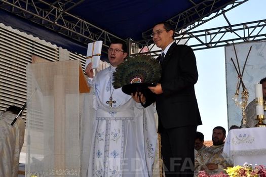 Premierul Victor Ponta a făcut aceste afirmaţii după ce a participat la slujba de sfinţire a Bisericii Greco-Catolice „Buna Vestire” din Bistriţa, unde a primit în dar din partea protopopului greco-catolic al Bistriţei, preotul Ioan Frişan, un clop cu pene de păun specific Văii Someşului Mare, iar din partea lui Florentin Crihălmeanu, episcop de Cluj-Gherla, un album cu bisericile greco-catolice din România, transmite corespondentul MEDIAFAX.