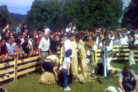 Şeful statului a primit apoi o pălărie de cioban şi, după ce Băsescu a terminat de tuns oaia, ciobanul stânei respective, care l-a ajutat, şi-a dat jos de pe el sumanul şi i l-a oferit preşedintelui, îmbrăcându-l cu haina respectivă, ca semn că a trecut cu brio proba de tuns oile.