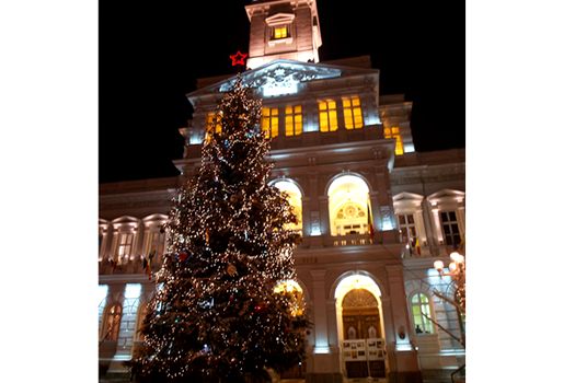 Bradul montat în acest an în faţa Primăriei este înalt de 20 de metri şi a fost adus din Munţii Apuseni. Costul total de achiziţie, transport, montare şi decorare a fost de zece mii de lei.