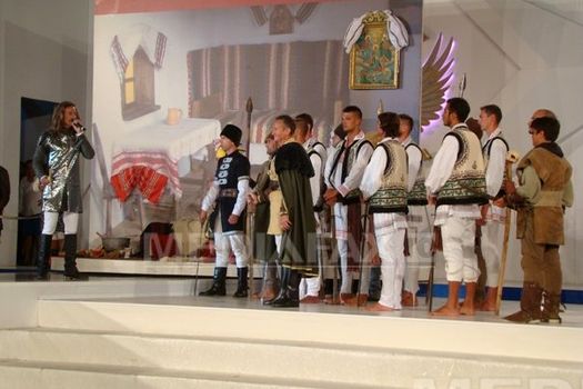 “Acesta a fost Ştefan cel Mare. Vreau să le mulţumesc în primul rând reginelor cântecului şi portului popular românesc, care şi-au dorit din tot sufletul, s-au bucurat să fie alături de mine şi de noi în acest spectacol. Să le aplaudăm pe doamna Irina Loghin şi pe doamna Maria Cârneci. Este o bucurie pentru sufletul nostru de români să putem asculta şi vechile cântări şi vechile tradiţii. Vreau să le mulţumesc cascadorilor de la Buftea, care au filmat cu Sergiu Nicolaescu şi care acum au fost printre noi şi ne-au învăţat să ne luptăm şi să ne purtăm ca nişte oşteni adevăraţi”, a spus Mazăre.
