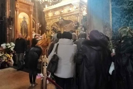 Luni după-amiază, zeci de persoane din Galaţi aşteptau cu buchete de busuioc în mână să ajungă la raclă.