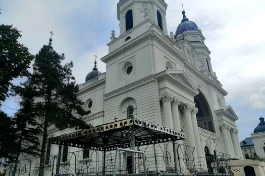 În curtea Catedralei Mitropolitane din Iaşi pregătirile pentru Hramul Cuvioasei Parascheva sunt în toi. Catafalcul pe care urmează a fi aşezată spre închinare racla cu moaştele Sfintei a fost deja montat, iar butoaiele cu aghiasmă au fost şi ele puse la locul lor.