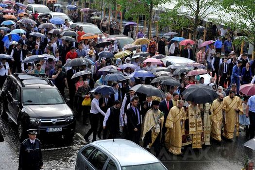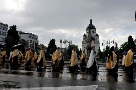 Credincioşii s-au adunat, duminică, în jurul orei 17.00, în faţa Catedralei Mitropolitane din Cluj-Napoca unde au asistat la slujba Vecerniei plecării genunchilor, oficiată în ziua de Rusalii, iar la final au plecat într-o procesiune prin centrul municipiului.