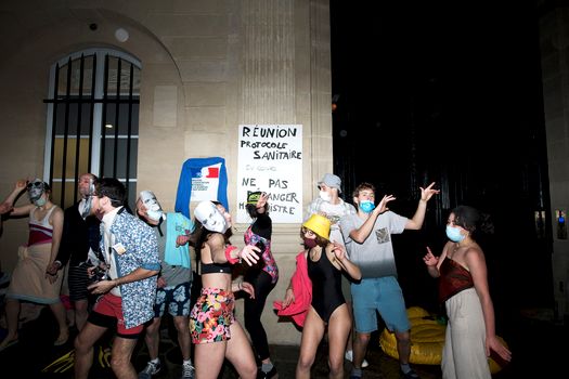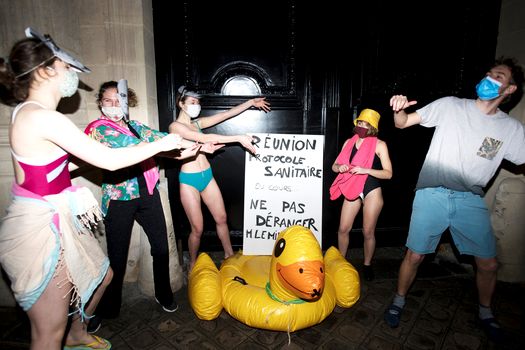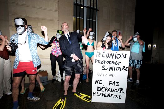 La doar 6 grade şi pe o ploaie măruntă, contestatarii ministrului francez al educaţiei şi-au pus muzică la boxe în faţa ministerului şi au început să danseze în costume de baie, încercând să redea atmosfera din insula distracţiei, Ibiza. De ce din Ibiza?