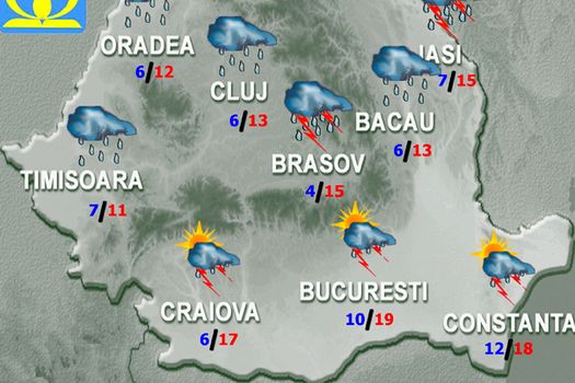 Miercuri, vremea se menţine în general instabilă şi se va răci uşor. În sudul, centrul şi estul ţării cerul va fi mai mult noros şi pe arii relativ extinse vor fi averse şi descărcări electrice. În restul teritoriului, înnorările vor fi temporare, iar astfel de fenomene se vor semnala izolat.