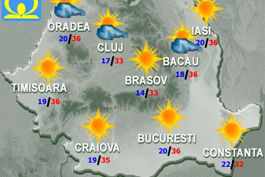 Vremea va fi în continuare călduroasă, caniculară după-amiaza în zonele de câmpie, de deal şi de podiş unde indicele temperatură-umezeală (ITU) va depăşi pragul critic de 80 al disconfortului termic. Temperaturile maxime vor fi cuprinse între 30 şi 37 de grade, iar cele minime se vor situa între 11 grade în depresiuni şi 25 de grade în Delta Dunării.