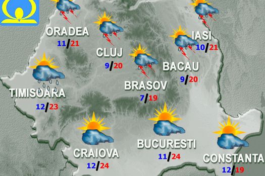 Temperatura maximă se va situa în jurul valorii de 24 de grade, iar cea minimă va fi de 9-11 grade.